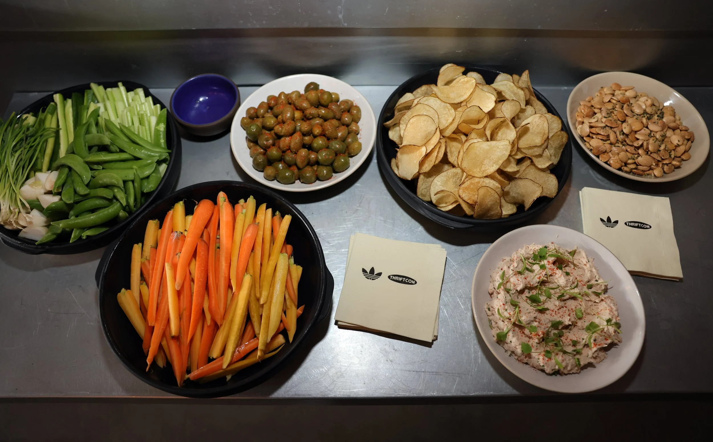 In celebration of the adidas x ThriftCon partnership, a private kick-off dinner was held at Michelin Guide-awarded restaurant, Bar Etoile, for 40 influential figures from the thrift community. The space featured tasteful branding, decor and floral accents with guests were gifted a brand new pair of adidas sneakers.